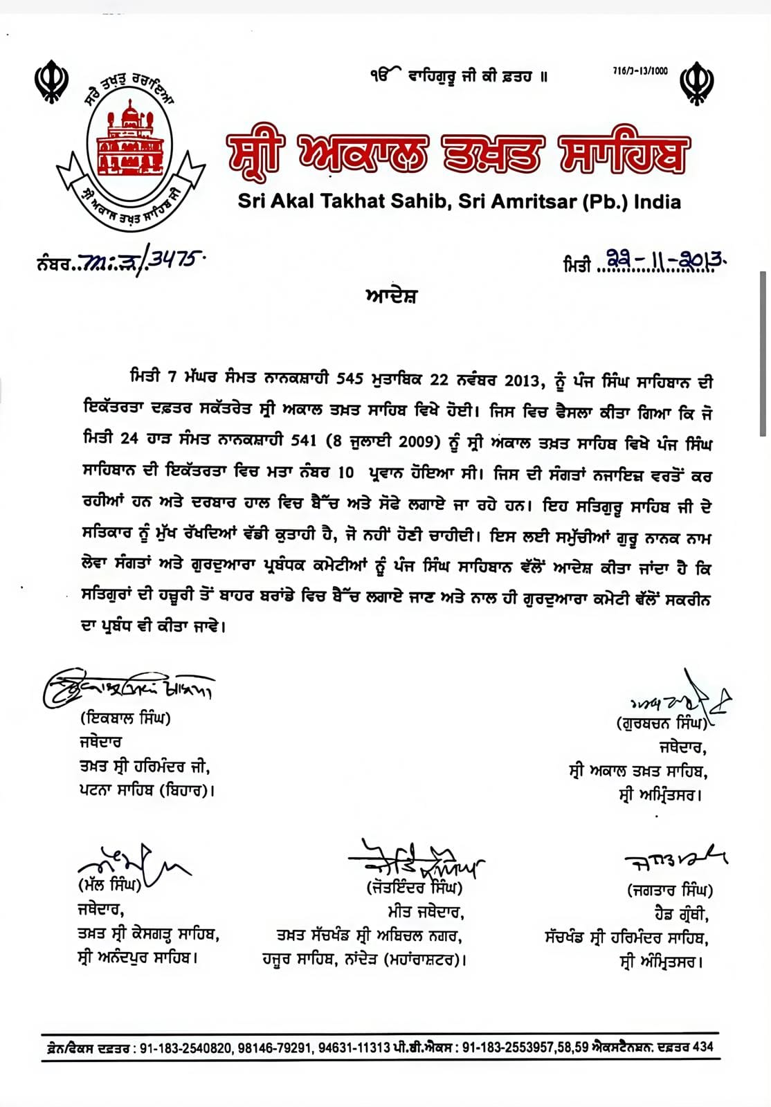f. Hukam must be taken at the end of the Divaan (congregational session) or after the Ardaas for Bhog (completion).