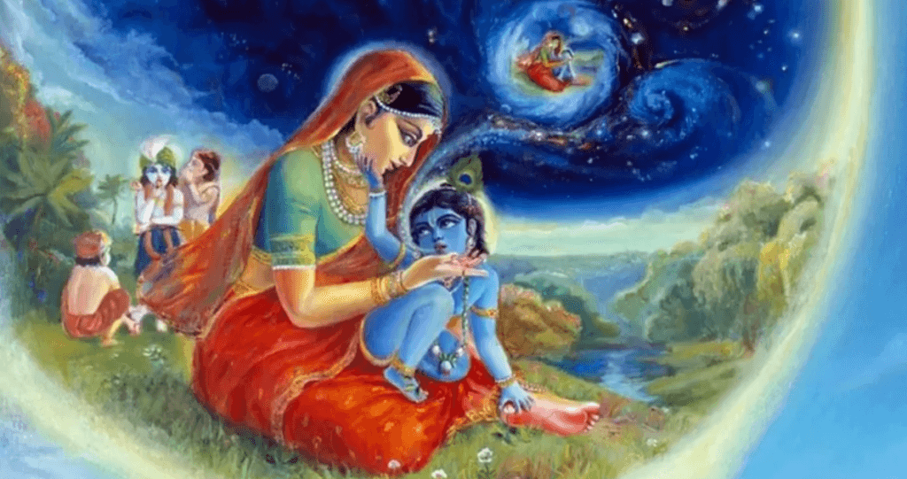 ਅਰਥ: ਜਸੋਦਾ ਮਾਂ (ਕ੍ਰਿਸ਼ਨ ਜੀ ਦੀ ਮਾਤਾ) ਇਹ ਕਹਿੰਦੀ ਸੀ ਕਿ ਮੇਰੇ ਪੁੱਤ ਦੇ ਕਮਲਾਂ ਵਰਗੇ ਨੈਣ ਮਧੁਰ ਬੈਨ ਅਤੇ ਕਰੋੜਾਂ ਇਸ ਦੇ ਅੱਗੇ ਝੁਕਦੇ ਹਨ। ਇਨ੍ਹਾਂ ਗੱਲਾਂ ਨਾਲ ਇਸ ਕਰਕੇ ਇਹ ਸ਼ੋਭਦਾ ਹੈ ਕਿਉਂਕਿ ਮੈਂ ਇਸ ਨੂੰ ਦਹੀਂ ਅਤੇ ਚਾਵਲ ਖਵਾ ਕੇ ਪਾਲਿਆ ਹੈ (ਭਾਵ ਬੀਬੀ ਜਸੋਦਾ ਇਹ ਦਾਅਵਾ ਕਰਦੀ ਸੀ ਕਿ ਮੇਰੇ ਪੁੱਤਰ ਕ੍ਰਿਸ਼ਨ ਜੀ ਦੀ ਹੋਂਦ ਮੇਰੇ ਕਰਕੇ ਹੈ)।