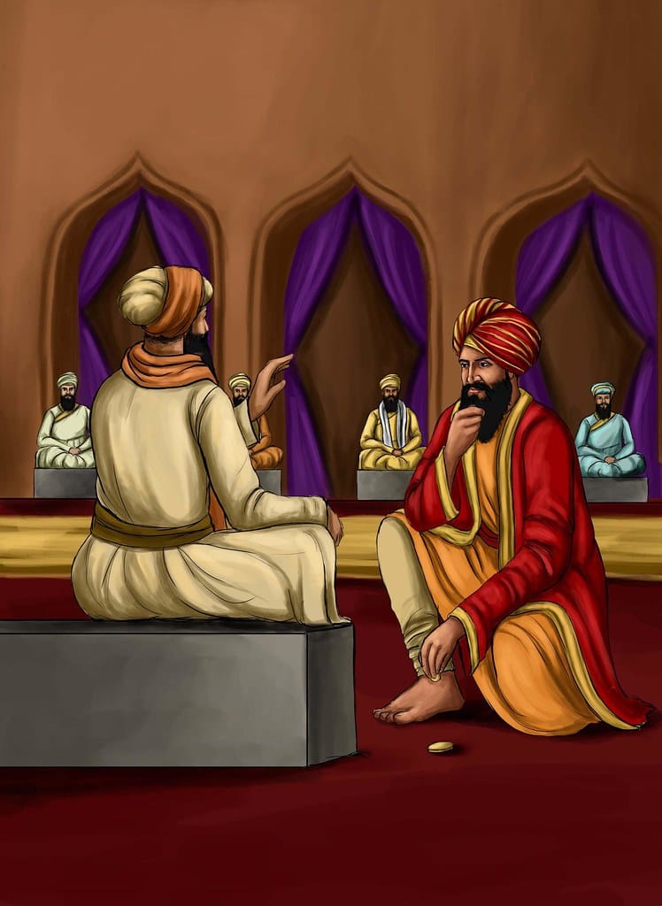 He came in front of Siri Guru jee and did matha tek of 2 mohars. Siri Guru jee opened his eyes. Makhan Shah felt as if 1000 suns had risen at dawn. He could not bear the piercing eyes of Siri Guru jee. Siri Guru jee, who is all-knowing knew that Makhan Shah had done ardaas that the real Guru would ask him for the remaining money. Siri Guru jee smilingly asked Makhan Shah in an extremely nectarous voice: