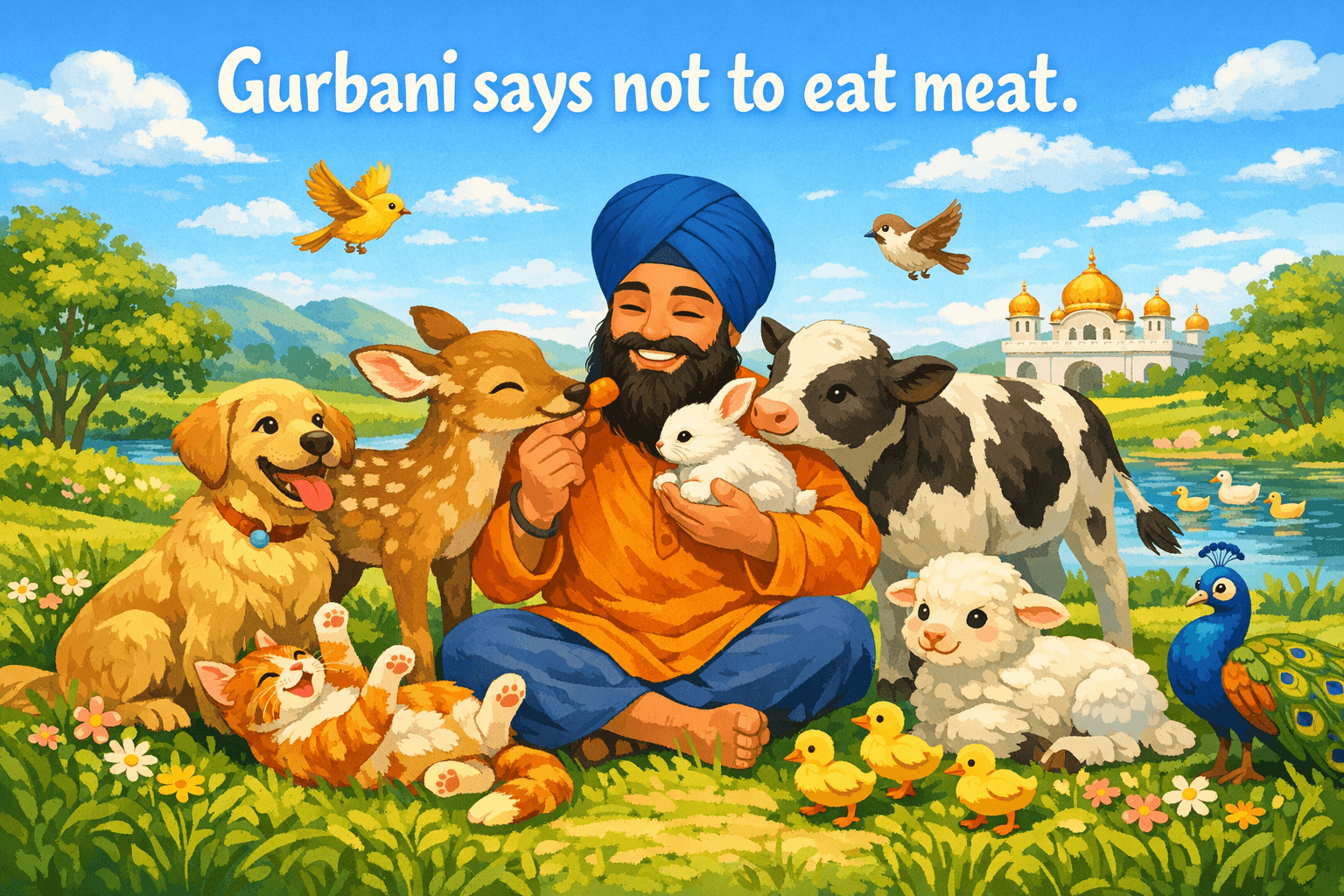 People who eat ਭਾਂਗ which here means chicken, eat fish, and drink alcohol, their pilgrimage, fasting, and other religious actions go in vain. If the meaning of ‘ਭਾਂਗ‘ is taken to be ‘marijuana’, even then the mention of fish has come in this verse. This is such a clear command that indulging in these things leads to the destruction of good deeds, and the person ends up in hell. Therefore, it is necessary to abstain from consuming meat.