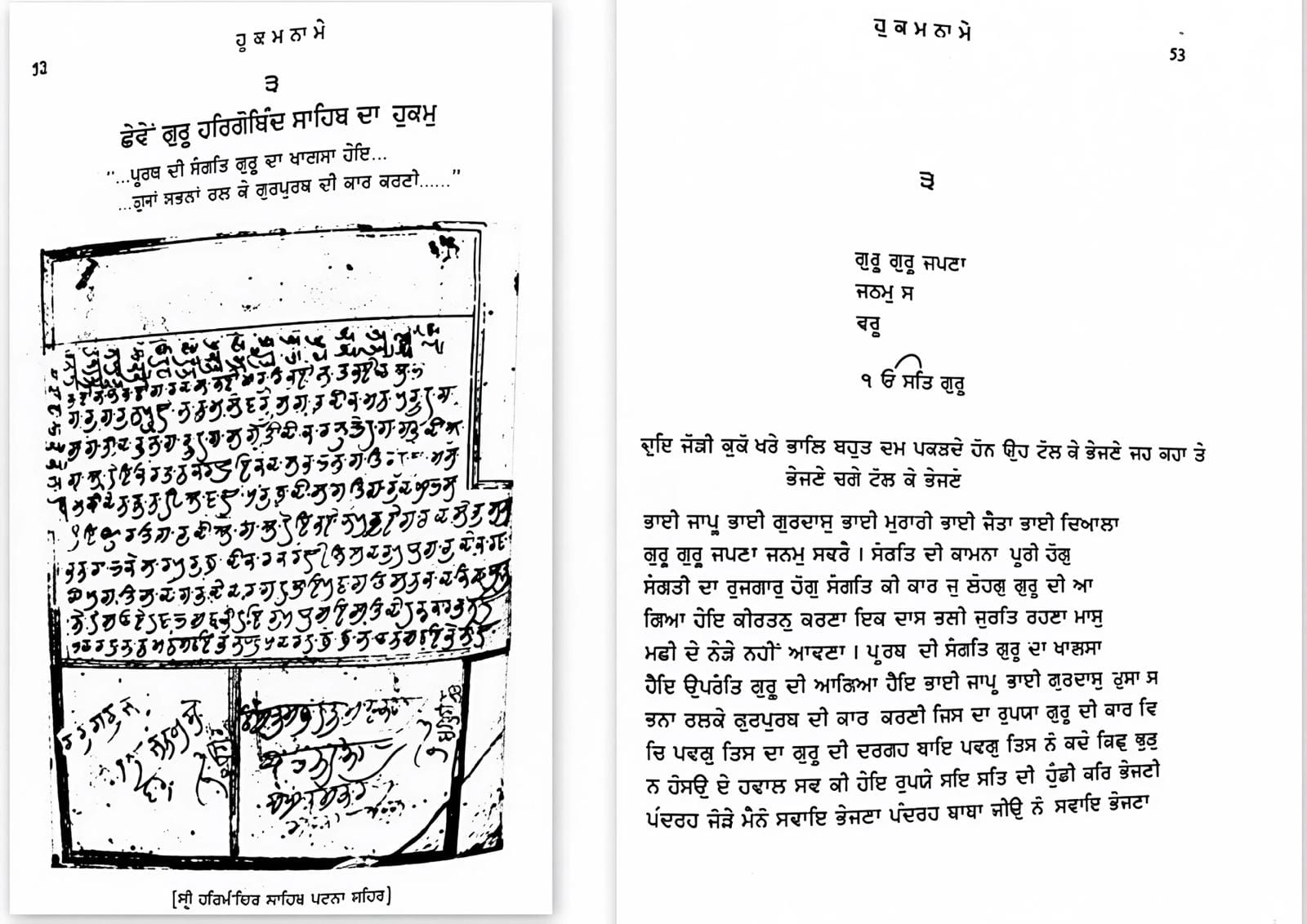Hukamnama from Guru Hargobind Sahib Ji about not consuming meat or fish