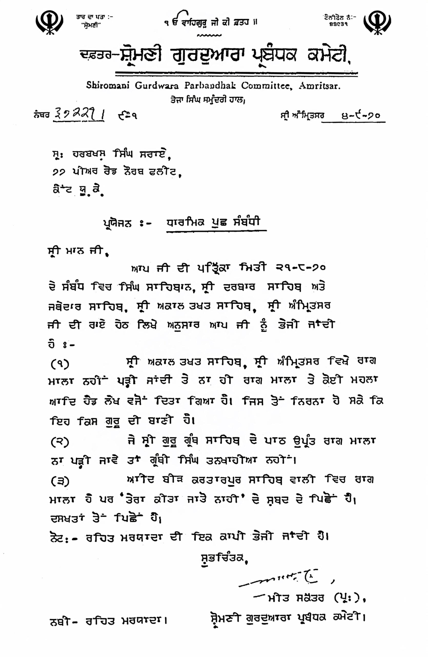 8. Giani Naahar Singh Ji ‘Asli Qaumi Dard’, Amritsar (reacting to second draft)
