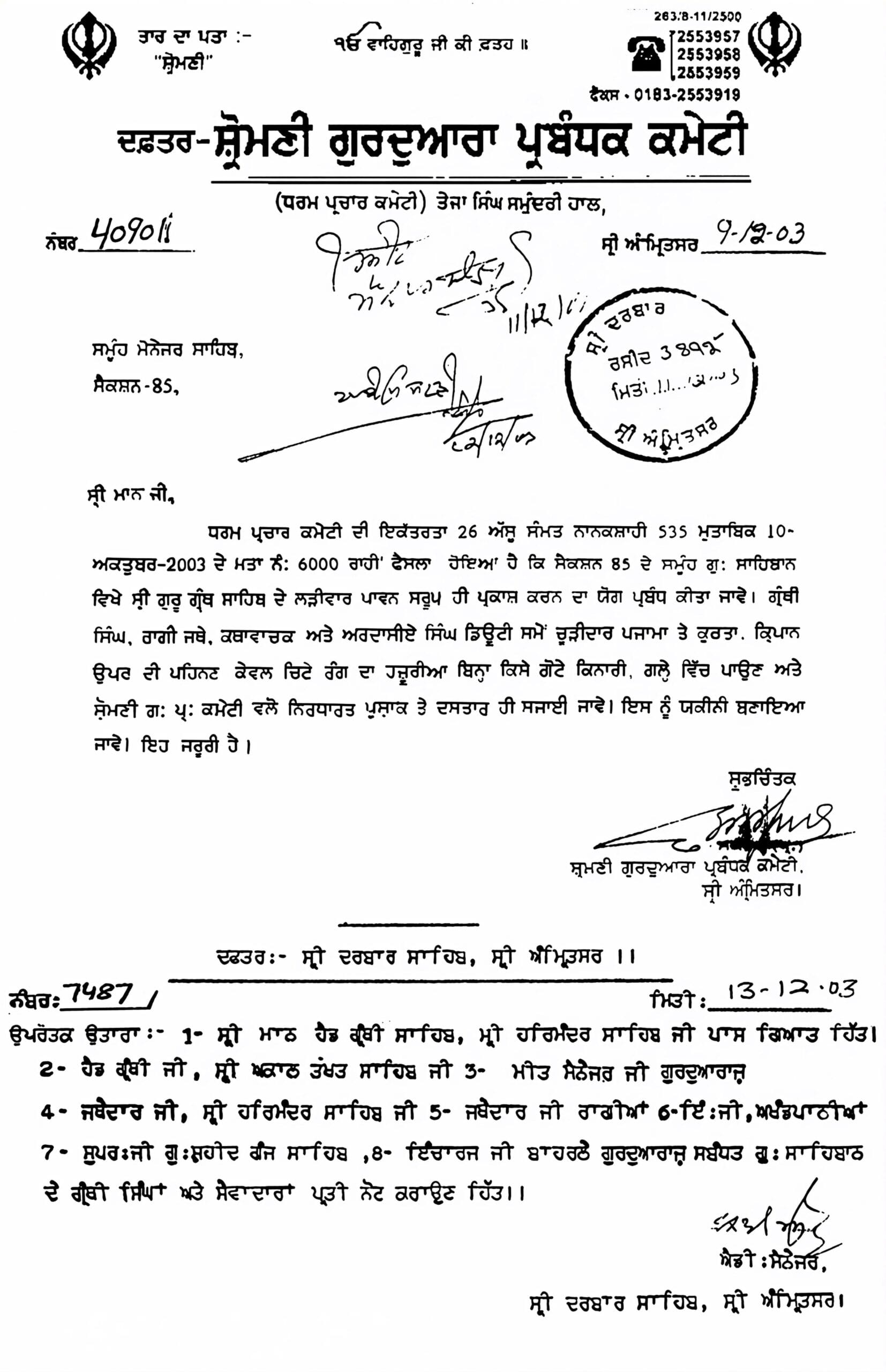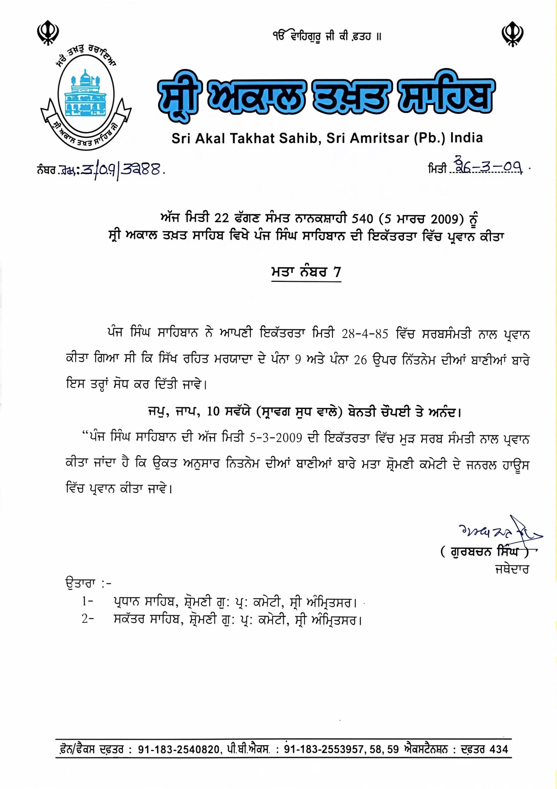 The draft is once again being respectfully submitted by the Conduct and Conventions Sub-Committee to the SGPC. We request that it be printed and distributed among the Sangat for final consultation. Furthermore, we recommend that a special session of the SGPC be convened to consider and formally approve the revised draft.